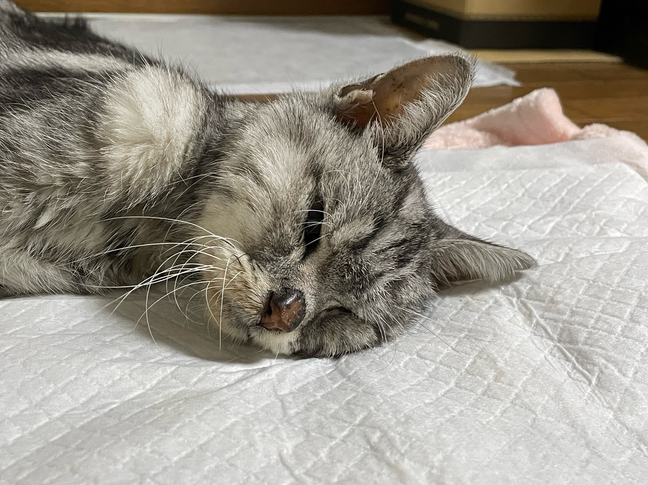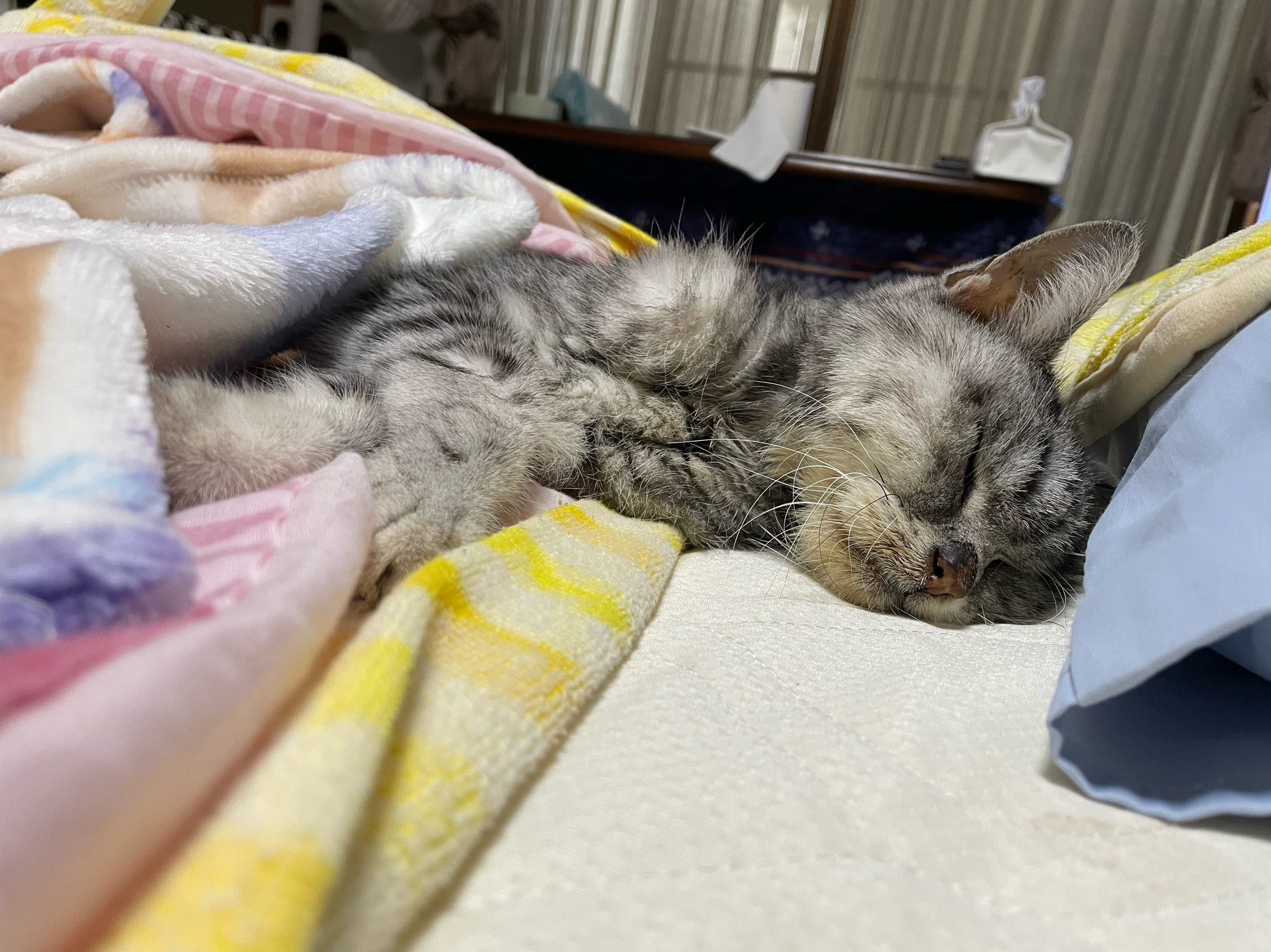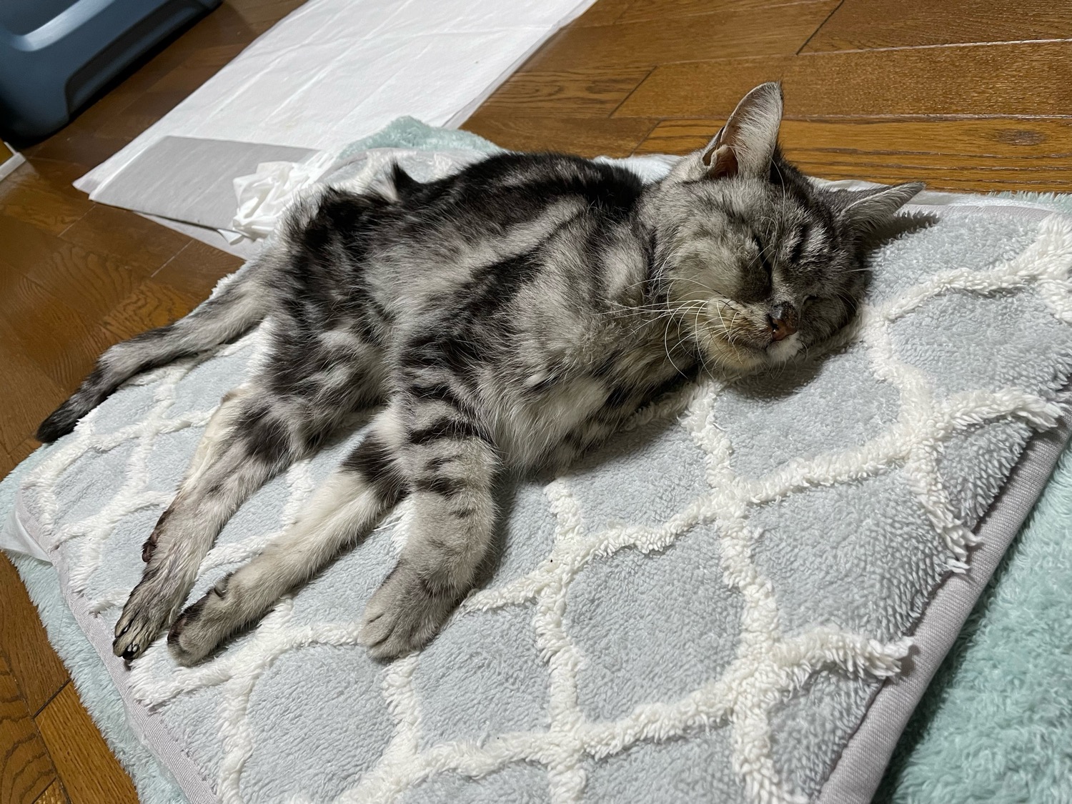 起き上がりたそうにバタバタしてる時、撫でて落ち着かせて我慢させちゃったね。