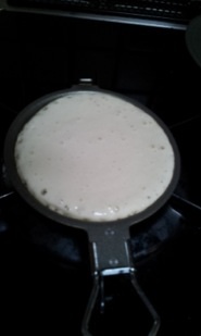 熱したフライパンに薄くサラダオイルを塗り、適量を流し入れ、待つこと1分ー1分30秒(って書いてあったけど、適当)
