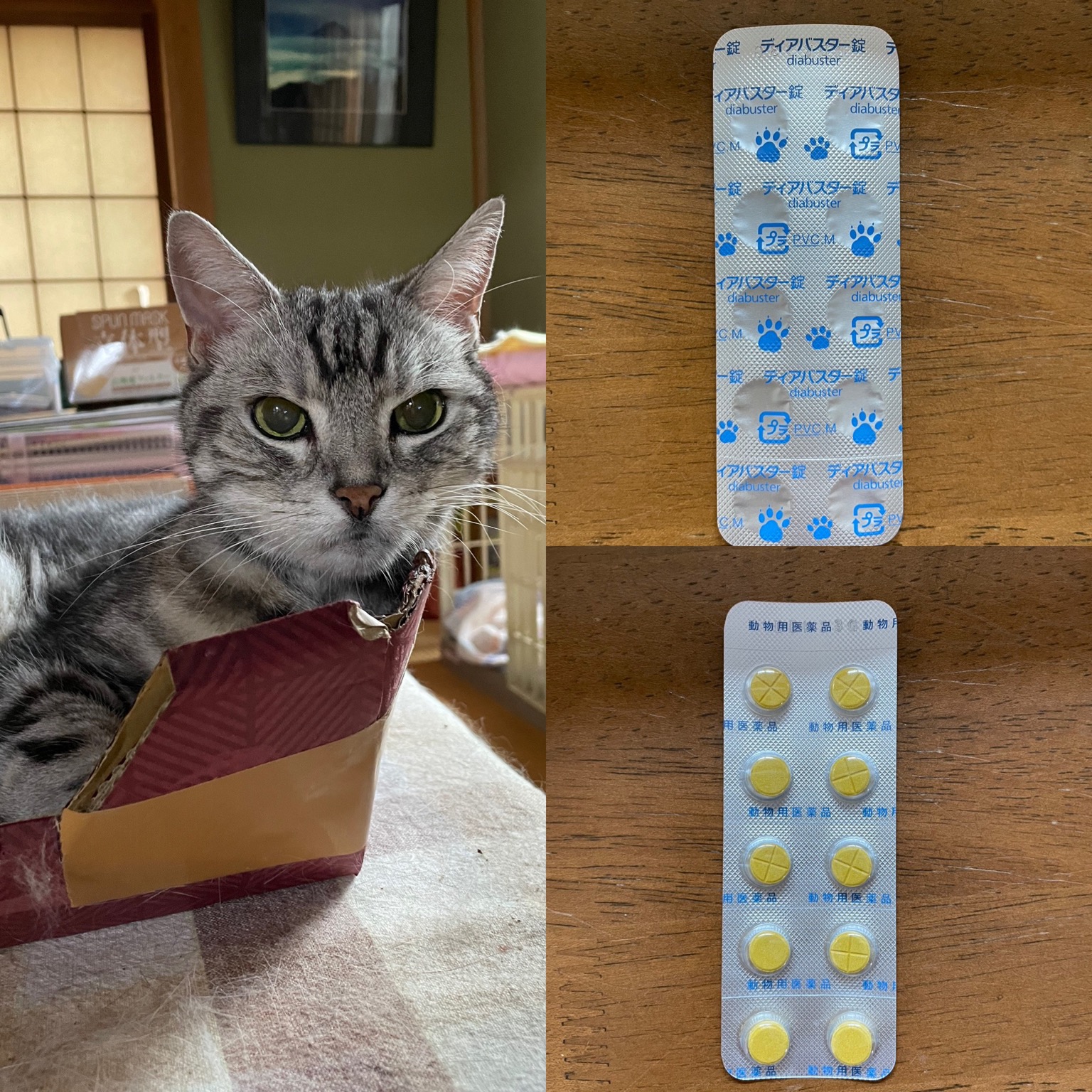 金曜日の夕方からお薬はじめたら、お薬まぜたら食べない。色々試して、焼きカツオ高齢猫用でごまかして飲ませる。