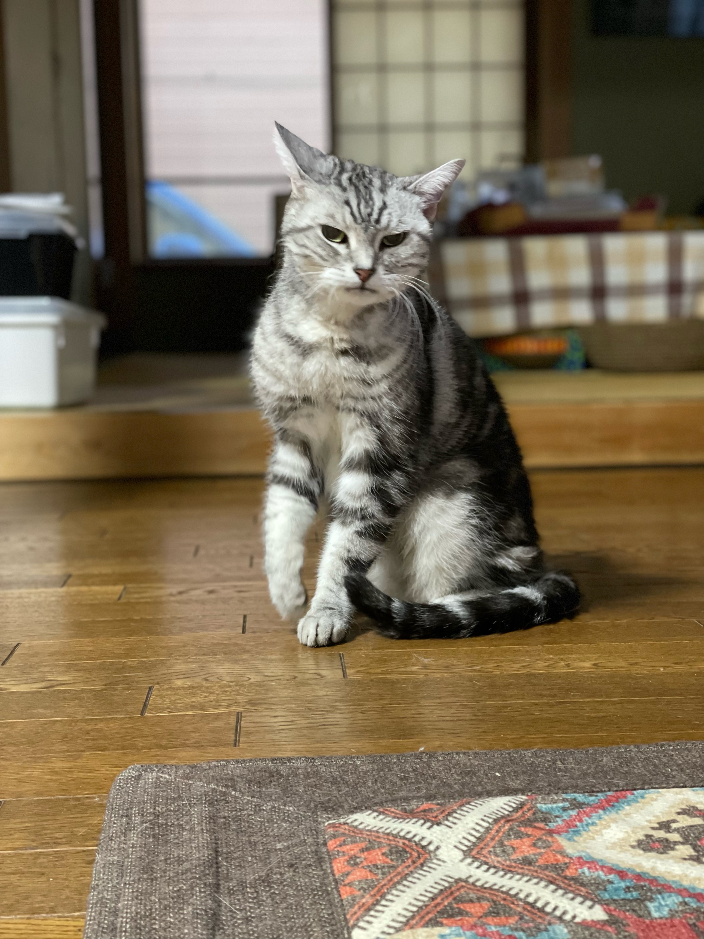 キッチンマットの上にちょっとだけ落ちてたのはその、ポタの残骸かな。