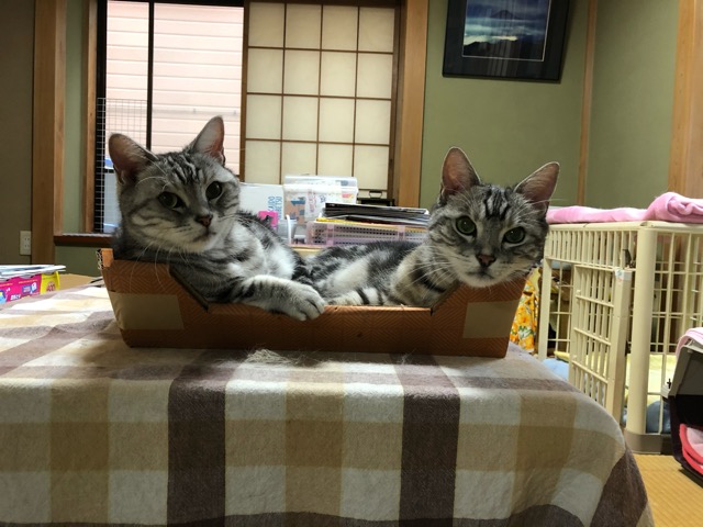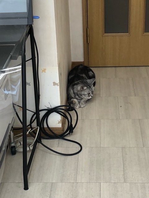 自分だけ連れて来られて超不機嫌。キャリーを見たちゃ太は逃げちゃったし(笑)