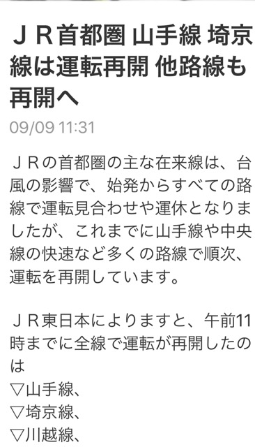 台風シーズンだから、仕方ないのはわかってるんだけど台風直撃の予報でJRは計画運休。当初の8時頃を大きく上回り、地元電車も9時31分に一番電車が過ぎたらしい。