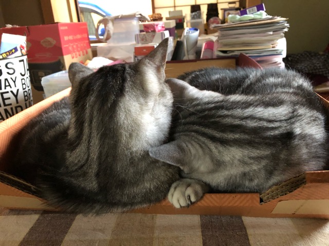 今でも激しい追いかけっこはしてますが、じーさんだからね、寝てる時間も増えてるかな?今日みたいに気温の下がった日はひっつき虫で寝てます!