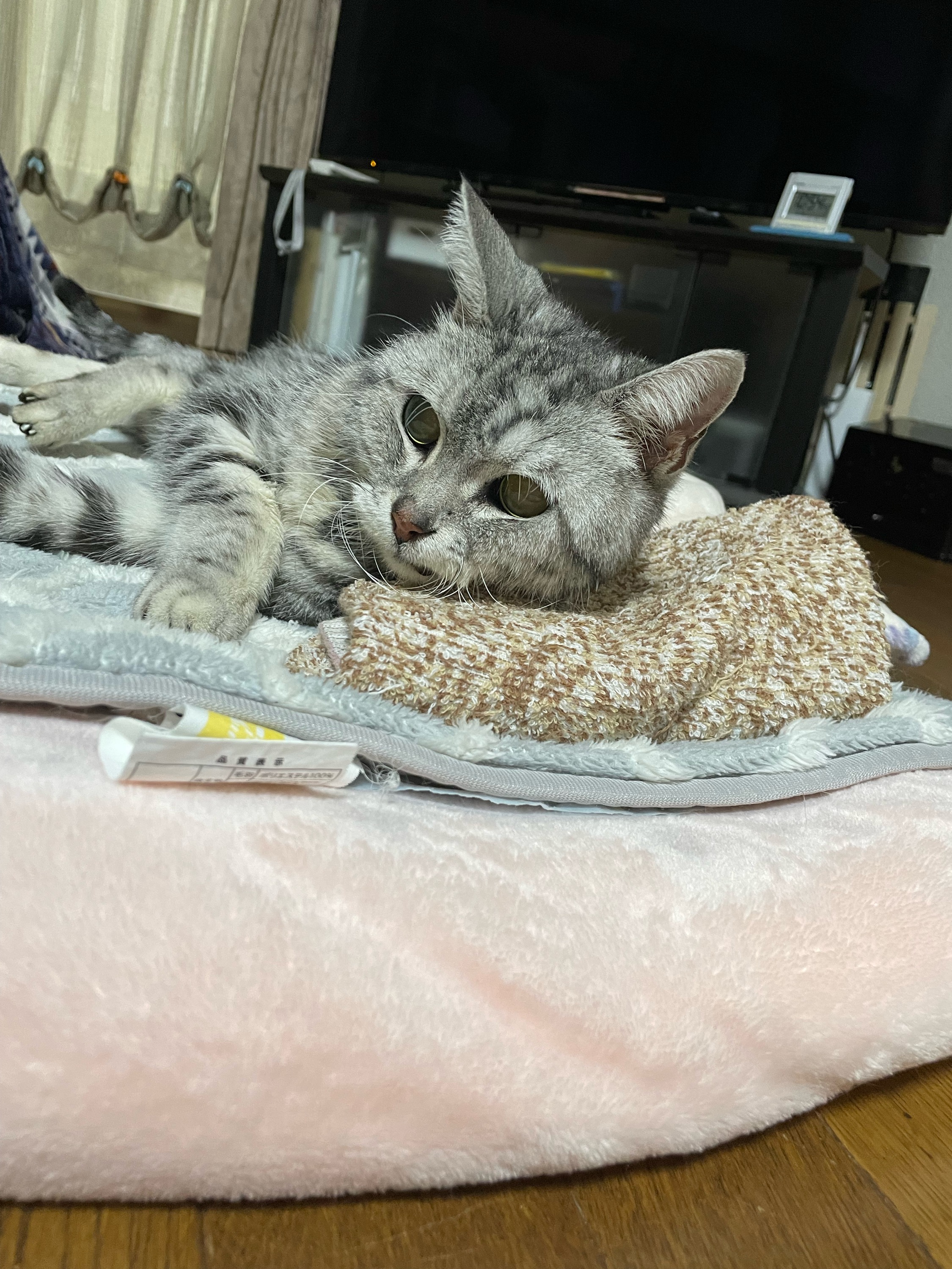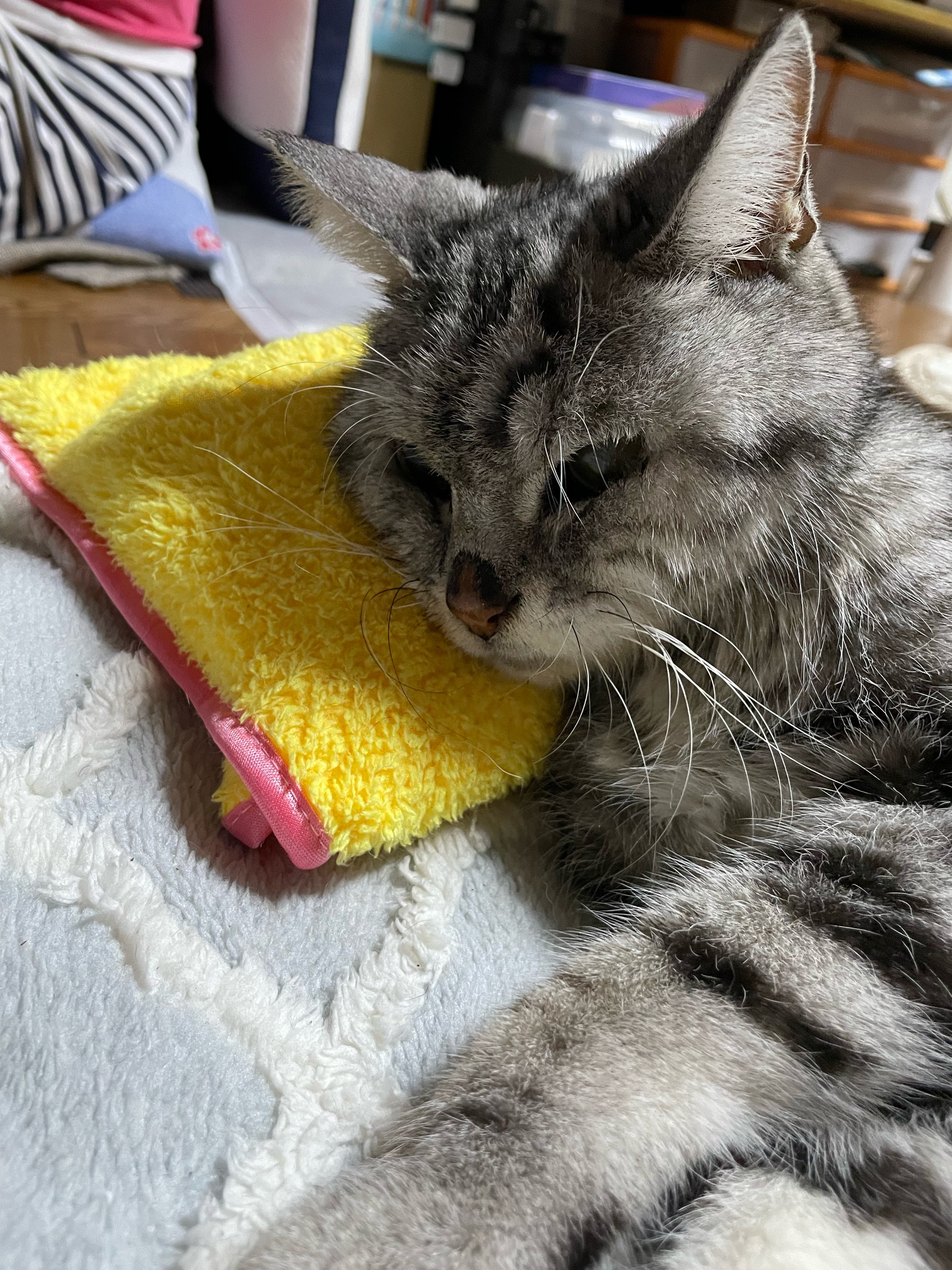 日曜日は朝から唸ったりシャーしたり。ご飯も食べず。11時過ぎから12時半くらいまで、手足の痙攣止まらず。やっと落ち着いたと思ったら同じ場所足の付け根あたりの匂いをずっと嗅いでいる。まったく歩かず。