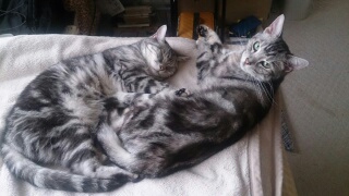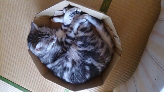 おめめまん丸なちゃ太さん、スリッパをはいたネコ陸ちゃん、丸くなって寝るネコに、丸くなれない身体の固いネコ。