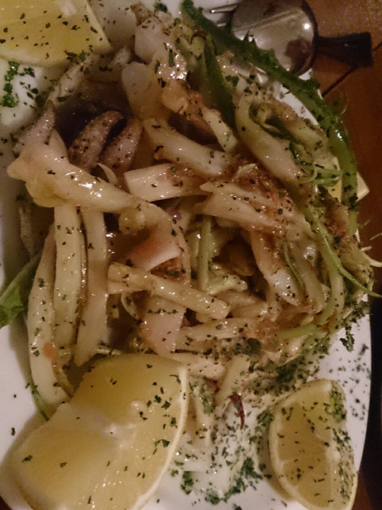 ローマの冬の味覚ブンタレッタのサラダ 旬の新鮮な烏賊のソテーと共に(って名前らしい)