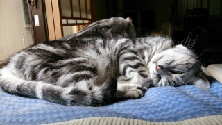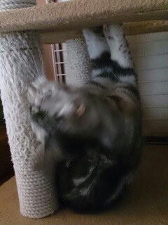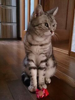 ↑ハギレを丸めて投げたところ、どうやら「ツボ」だったようで(^.^)