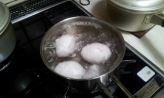 タマゴを茹でている間はコンロをガン見!危なくて目が離せません(>_<)