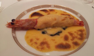 車エビに舌平目を巻き付けて、濃厚なソースで。『エリザベス女王風』