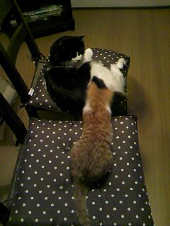 ニャンスケ君は大人のネコさんには全くと言っていいほど友好的なネコですが、仔猫を見た事がないせいか、おっかなびっくりだし、拗ねるしと、最初は大変だったようですが、徐々に距離は縮んでいるようです(^-^)